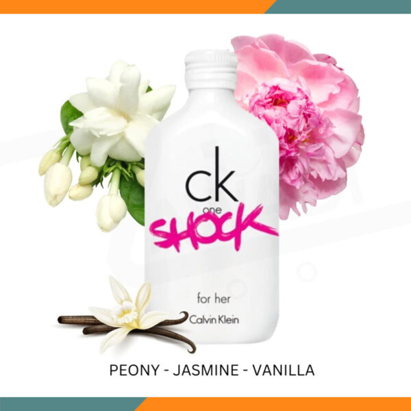 Calvin Klein One Shock for Her is a vibrant, energetic fragrance that ignites the senses. The top notes burst open with spicy ginger, crisp mandarin, and fresh bergamot. The heart blooms with sea jasmine, passion flower and freesia, while the base notes dry down to sensual musk, woody amber, and creamy vanilla. This bold Eau de Toilette comes in a striking electric blue bottle inspired by energy and charged emotions.